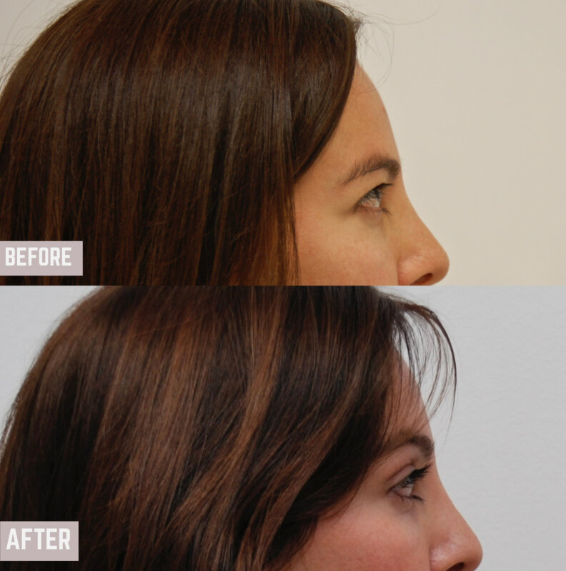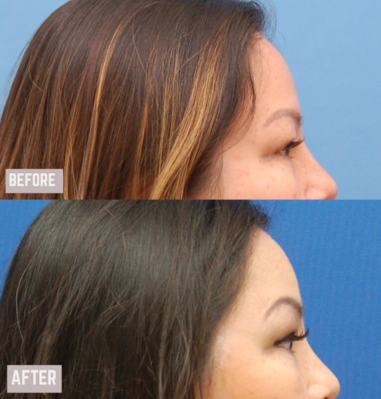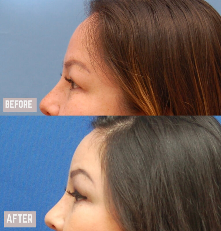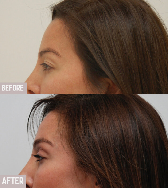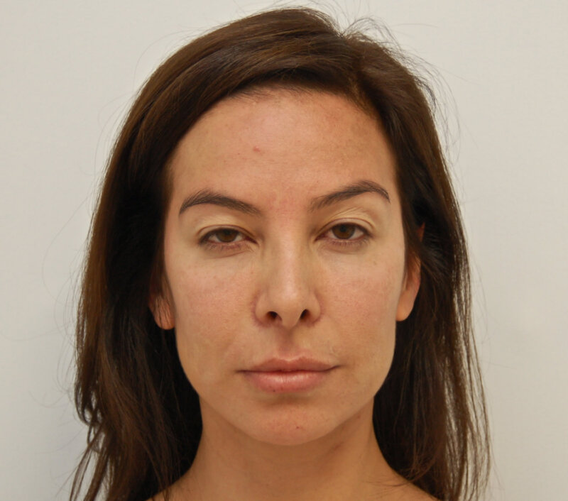 Η ασθενής υποβλήθηκε σε ενδοσκοπική επέμβαση ανόρθωσης μετώπου και φρυδιών με προσαρμογή των μυών του μεσοφρύου. Η θέση των φρυδιών αναδιαμορφώθηκε. Η πτώση των άνω βλεφάρων διορθώθηκε με την ενδοσκοπική ανόρθωση φρυδιών. Δεν πραγματοποιήθηκε άνω βλεφαροπλαστική. Αυτό είναι ένα σημαντικό μήνυμα. Πολλές ασθενείς που πιστεύουν ότι χρειάζονται επέμβαση άνω βλεφαροπλαστικής είναι στην πραγματικότητα υποψήφιες για την ενδοσκοπική ανόρθωση φρυδιών, η οποία κάνει πολύ περισσότερα από το να διορθώνει την πτώση των άνω βλεφάρων και να ανυψώνει τα φρύδια. Ανοίγει το βλέμμα!