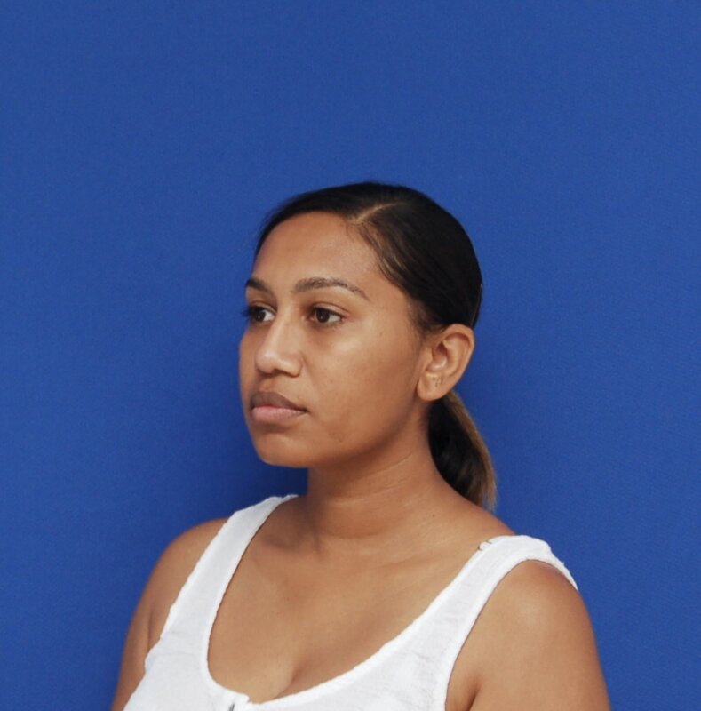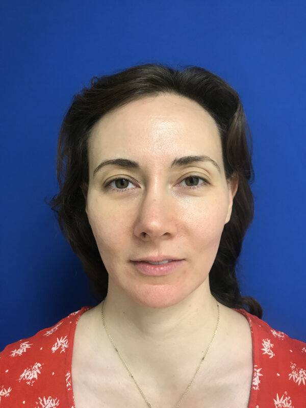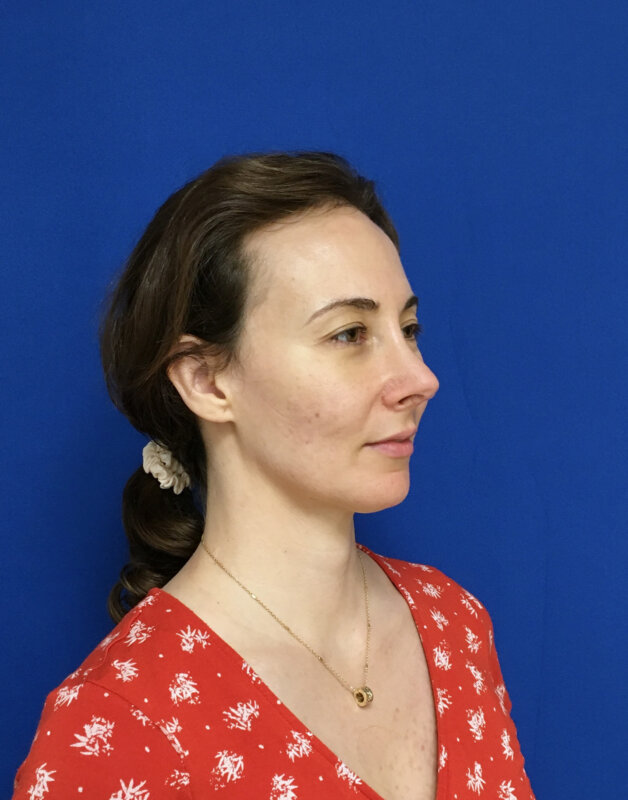 Είχε το αρχικό στάδιο πτώσης του μέσου προσώπου, το οποίο προκαλούσε πτώση της γωνίας του στόματος και αρχόμενη χαλάρωση στο κάτω μέρος των παρειών (jowl). Ήθελε να δράσει προληπτικά και να το διορθώσει. Επιθυμούσε να αποκαταστήσει τον όγκο και την προβολή των ζυγωματικών, καθώς επίσης και να αποκτήσει μια πιο καθαρή γραμμή της γνάθου. Υποβλήθηκε στην ελάχιστα επεμβατική ανάρτηση του μέσου προσώπου (MIMS), αλλιώς γνωστή ως facelift «χωρίς ουλές». Η ασθενής υποβλήθηκε σε αυτό το facelift με τοπική αναισθησία και ήταν ξύπνια και ένιωθε άνετα κατά τη διάρκεια της επέμβασης.